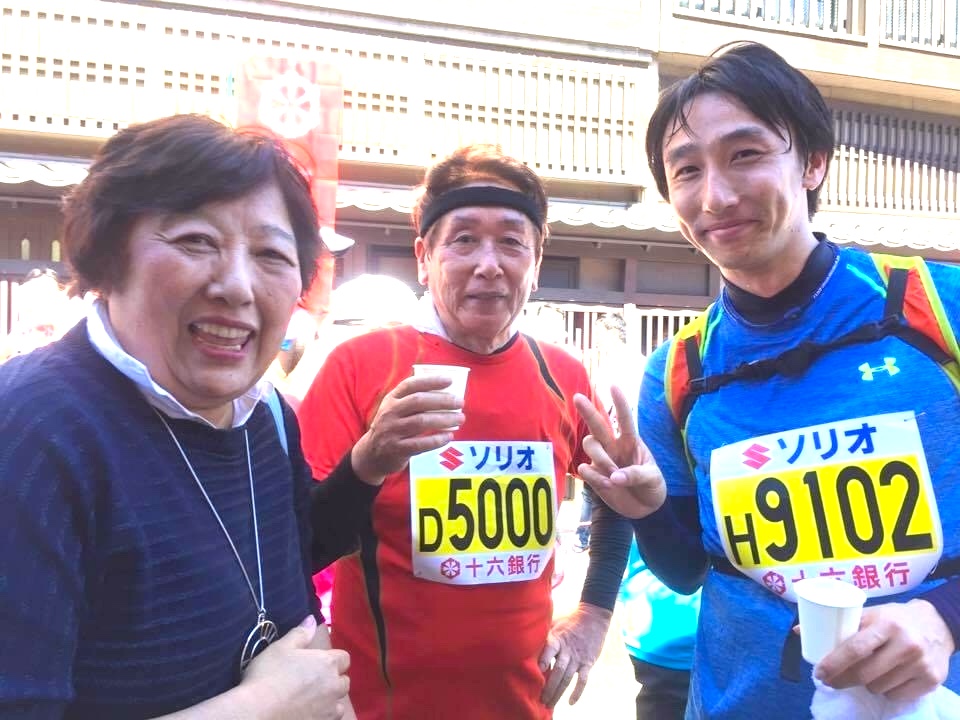 写真は2019年4月の高橋尚子ハーフマラソンの折、故 細江前市長、故 細江夫人、次男の政広さんと十八楼前での一コマです。