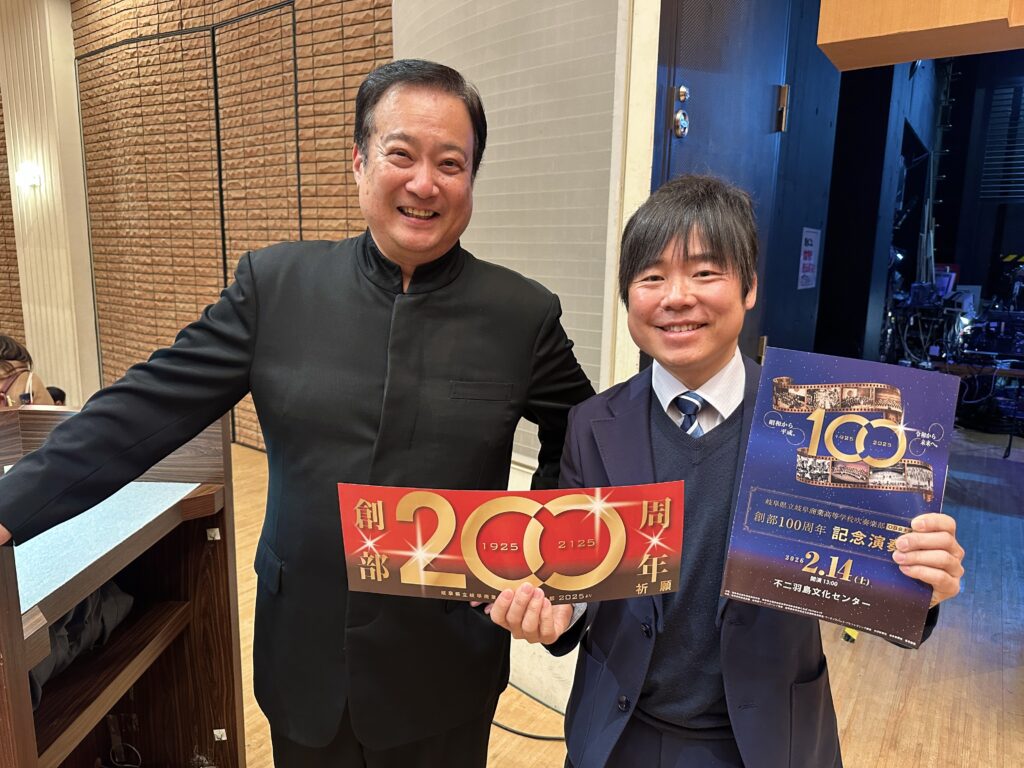 写真は100年の内40年以上指導にあたられ、今日の岐商吹奏楽部へと導かれた和田隆明先生と岐商先輩そして岐商同級生です。岐阜市、岐阜県が誇る #県岐商吹奏楽部 !益々の活躍を願っています。