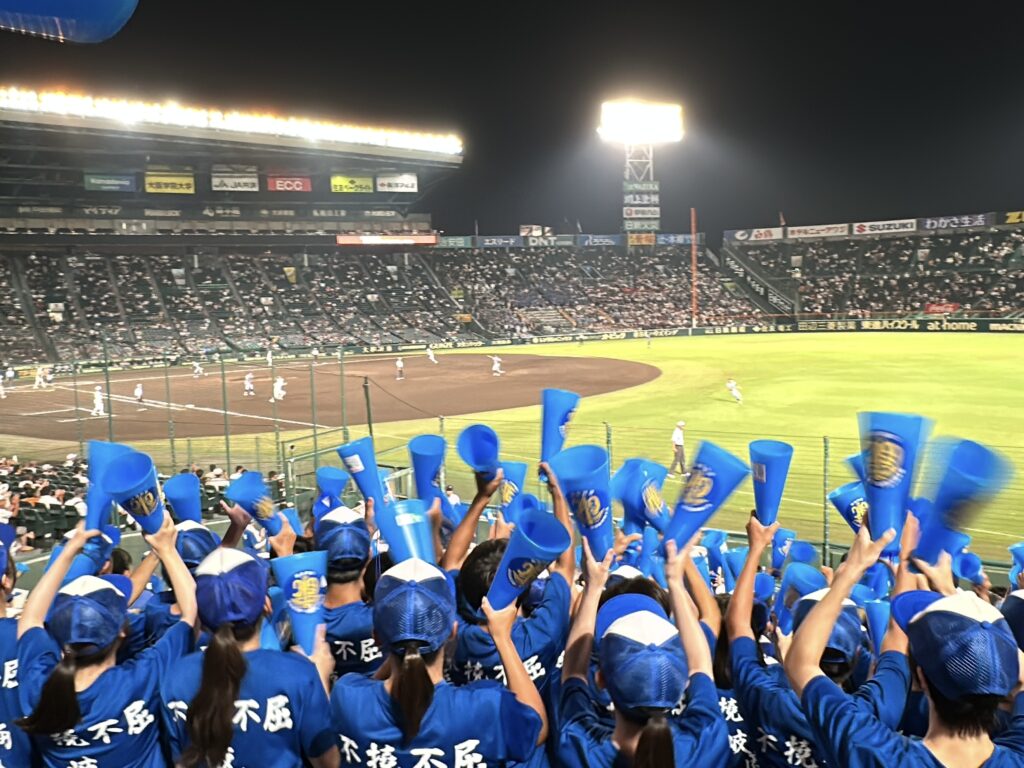 【 県岐商2回戦突破!熊本県知事のエールに感激( 25/08/15 fri )】#県岐商 2回戦は #東海大熊本 との対戦でした。前夜に熊本県の木村知事が #横山温大 選手に対してエールを送られていました。木村知事も生まれつき左手首から先がありません。「(横山選手に対して)どれだけの努力があったか」と、熊本日日新聞の取材に心を寄せた対戦相手である県岐商へのエールに前夜から感激し、私も心を寄せていました。しかも東海大熊本の初戦は、地元での大雨により応援団のバスが足止めとなり試合に間に合わず、アルプススタンドから送られるはずだった応援は空席に…、そんな中で勝ち抜いた2回戦で初めてとなった熊本側のアルプル応援は、本当にエネルギーが凄く、心から感動し、ただただエールを送っていました。