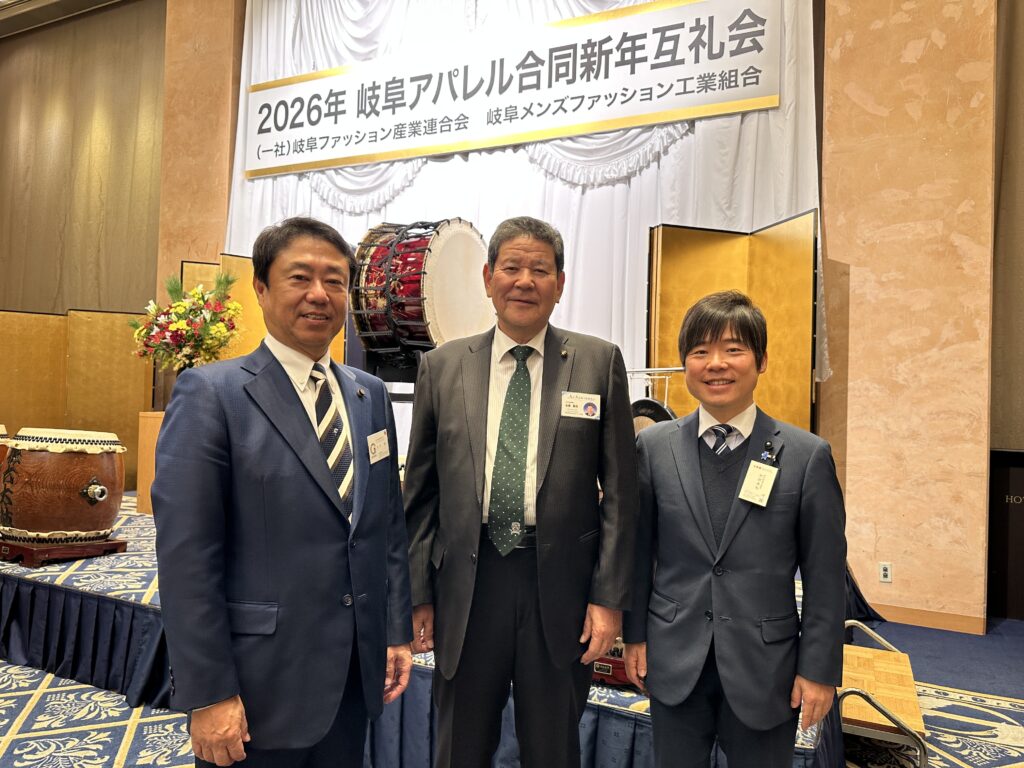 【 岐阜アパレル合同新年互礼会( R8/01/07 wed )】新年互礼会シーズンです。今年も岐阜駅周辺の #問屋町 を中心に形成される#岐阜ファッション産業連合会 、#岐阜メンズファッション工業組合 の新年互礼会に出席しました。海外のファッションショー参加など通じて大活躍されるアパレル企業が岐阜市内には沢山あります。岐阜アパレル匠の技を今年も更にブラッシュアップされますよう願っています。写真は #岐阜市議会 の竹市議長、谷藤議員です。