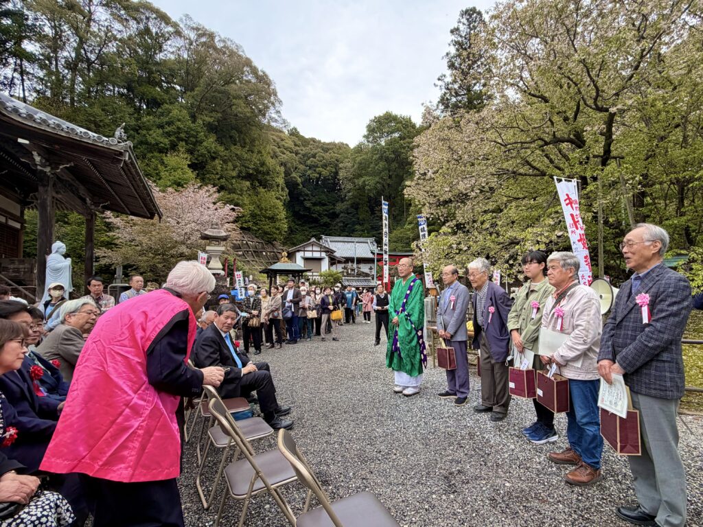 【 歴史ある最先端の中将姫誓願桜と岐阜まつり( 26/04/05 sun )】岐阜市芥見の #中将姫誓願桜 保存会40周年記念式典と観桜会が盛大に開かれました。保存会は長年に渡り故玉田県議が中心となり進められた活動です。開会にあたり出席者で黙祷を捧げた後、挨拶に立ちました。4年後には国の天然記念物指定から丸100年を控えています。#岐阜駅 前や #岐阜県庁 前にも二世が植樹されています。会長を引き継がれた #願成寺 の梶田住職からは、このほど梶田住職がAIで作詞作曲された誓願桜の歌が披露されました。歴史ある最先端の中将姫誓願桜です。(写真:俳句で表彰された方のお一人は、地元はスポーツキャスター高橋尚子さんのお父様です^^)