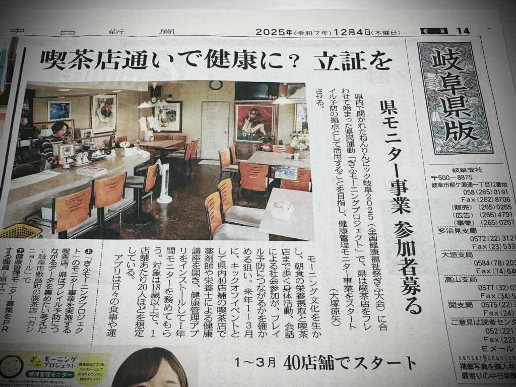 【 フレイル対策と岐阜喫茶モーニング( 25/12/05 fri )】90代でも健康長寿な秘訣は、(1)美味しい食事がとれている、(2)生活リズムが安定し適度な運動ができている、(3)自分が社会に役立っている自覚がある、の3点(フレイル3本の対策と一致)と語るのは #江崎禎英 #岐阜県知事 です。その3点を「美味しい、楽しい、ワクワク」と表現し、#岐阜喫茶モーニング がフレイル対策に極めて有効として、岐阜県政の健康政策に位置付けながら、知事自ら各地のモーニングを各地域のシニア世代の皆様と交流しながらPRして歩いています。