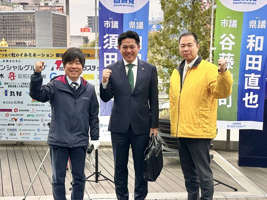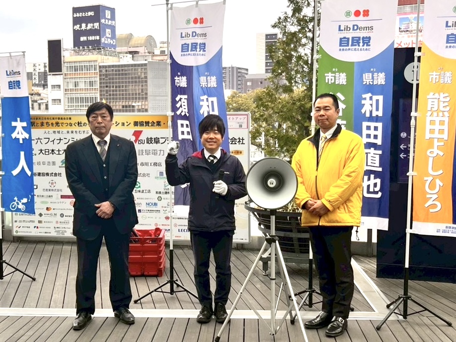 【 今週末は県政・市政報告会( 26/03/23 mon )】週明け月曜朝イチバンは #JR岐阜駅 より須田市議、熊田市議と共に岐阜県政+岐阜市政報告より始まりました。偶然にも柴橋市長が出張前に立ち寄られ記念に一枚、いよいよ年度末が近づいてきました。今週も元気よくいきましょう。