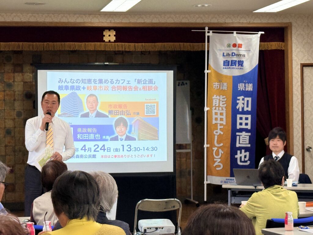 【 熊田市議との県政&市政報告 ( 27/04/25 sat )】表題の通り、金曜は #長森南公民館 をお借りして、地元の #熊田由弘 市議と県政&市政報告会を合同で開催しました。先日の #手力雄神社 は #手力火祭り をきっかけに熊田市議と地域を歩いています。平日にも関わらず市内各地より足を運んで頂いた皆様ありがとうございました。閉会後は、早速頂いた県政に関するご要望にて熊田市議と現場立会い、今後も定期的に企画し地域の皆さんの知恵を集めながら、ガッチリ連携しながら県政市政に反映していきます。