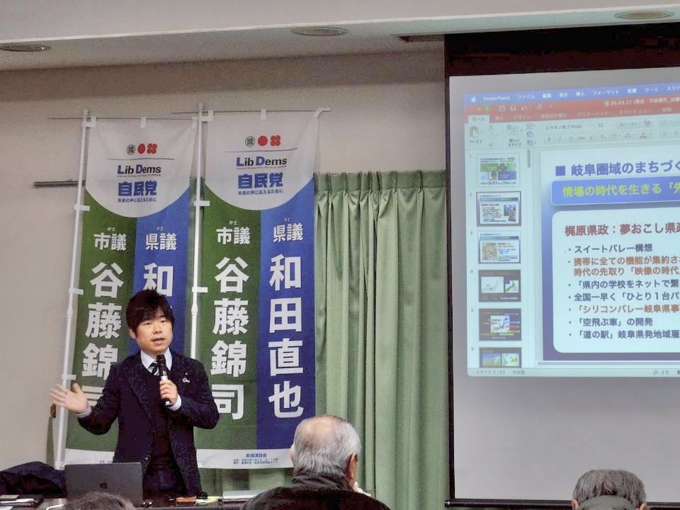 【 県政+市政報告会( 26/02/21 sat )】今月の「みんなの知恵カフェ*県政+市政報告会」は、岐阜市東部コミセンにて、地元の #谷藤錦司 市議と県政市政報告しました。谷藤市議からは岐阜市のゴミ有料化方針と長良川鵜飼観覧船の今後について、私からは東海環状自動車道西回りルート沿線の産業クラスター、県財政の見える化策、関係人口、県立高校再編、LRT構想など、主には先の県議会での質問項目を中心に県政報告しました。こうした機会を大切に、今後も県議選でも掲げた対話の「わ」を大切に活動を進めます。