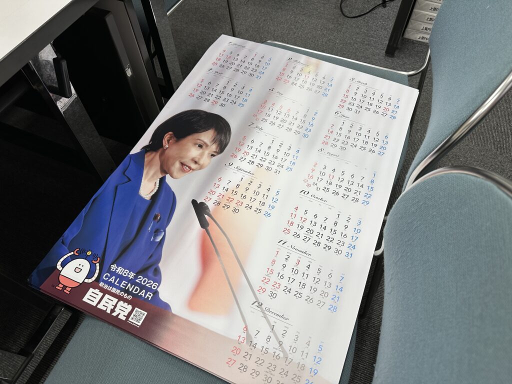 【 自民党ポスターとカレンダー ( 25/12/23 tue )】年の瀬が近づくと年末挨拶と共にカレンダーを頂く機会が増えますが、県連からお預かりした来年の #自民党 カレンダーを自民党員の方にお届けしていますと、例年に増して喜んで受け取ってくださる方が多い印象です。このタイミングで #高市総裁 の新しい自民党ポスターも登場、事務所など岐阜市内にも掲示を始めました。同時に、過日届きました片山財務大臣の看板も掲げました。