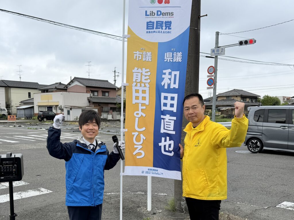 【 街頭活動@岐阜市長森( 27/04/17 fri )】金曜朝の県政&市政報告は、岐阜市長森にて #熊田由弘 市議と行いました。令和8年度予算を中心に街頭活動、のち #手力雄神社 すぐ近所にて喫茶モーニングで意見交換、午後は故白橋元県議が情熱を注がれた憲法おしゃべりカフェ@金神社にてワイワイ情報交換です。